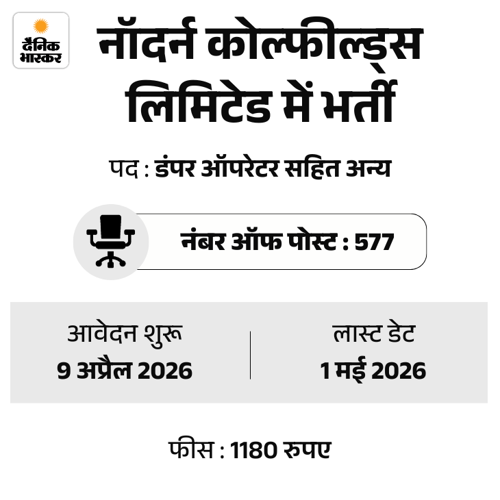 3. नॉर्दर्न कोलफील्ड्स में 577 वैकेंसी, 10वीं, 12वीं पास को मौका