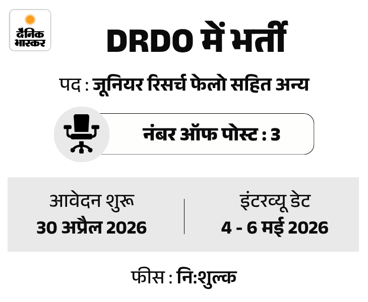 2. DRDO में जेआरएफ सहित इंजीनियर की भर्ती, स्टाइपेंड 37 हजार
