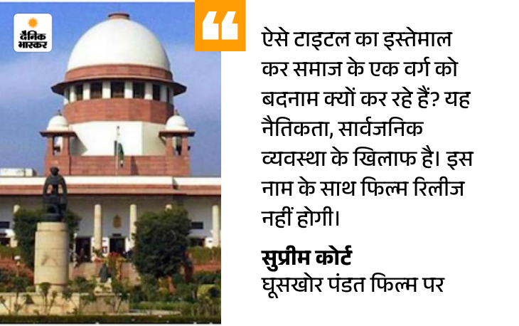 सुप्रीम कोर्ट ने गुरुवार को फिल्म ‘घूसखोर पंडत’ के टाइटल को लेकर फिल्ममेकर और नेटफ्लिक्स को फटकार लगाई। कोर्ट ने कहा कि समाज के किसी वर्ग को ऐसे नाम से बदनाम नहीं किया जा सकता।