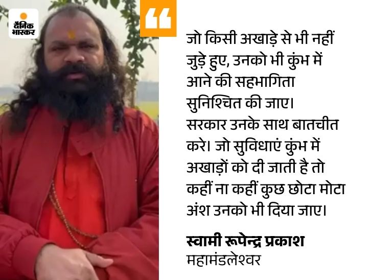 - स्थानधारी और आश्रमधारी संतों को सुविधाएं ना मिलना: स्वामी रूपेन्द्र प्रकाश ने कहा कि कुंभ की शोभा केवल अखाड़ों के नागा संतों और शाही पेशवाई से नहीं है। जो साधु किसी अखाड़े से जुड़े नहीं हैं, उन्हें भी मुख्यधारा में लाना चाहिए और मिलने वाली सुविधाओं, मान-सम्मान और सहायता का हिस्सा मिलना चाहिए।