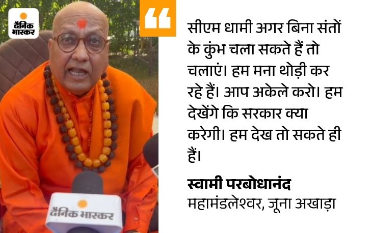 - कुंभ और अर्धकुंभ के आयोजन को लेकर मतभेद: सीएम धामी ने 28 नवंबर को सभी 13 प्रमुख अखाड़ों के साथ बैठक कर कुंभ की तारीखों का जो ऐलान किया है उसमें पहली बार अर्धकुंभ में 4 शाही स्नान शामिल किए गए हैं, इसपर संतों का कहना है कि अर्धकुंभ में न छावनी लगती है, न ध्वज होता है और न शाही स्नान जैसी परंपरा होती है। ऐसे में इसे कुंभ के रूप में कैसे मनाया जा सकता है। जूना अखाड़ा के स्वामी परबोधानंद ने कहा कि सरकार को कुंभ और अर्धकुंभ की परंपरा पर फिर से विचार करना चाहिए, अन्यथा भविष्य में बहिष्कार की संभावना बनी रहेगी।