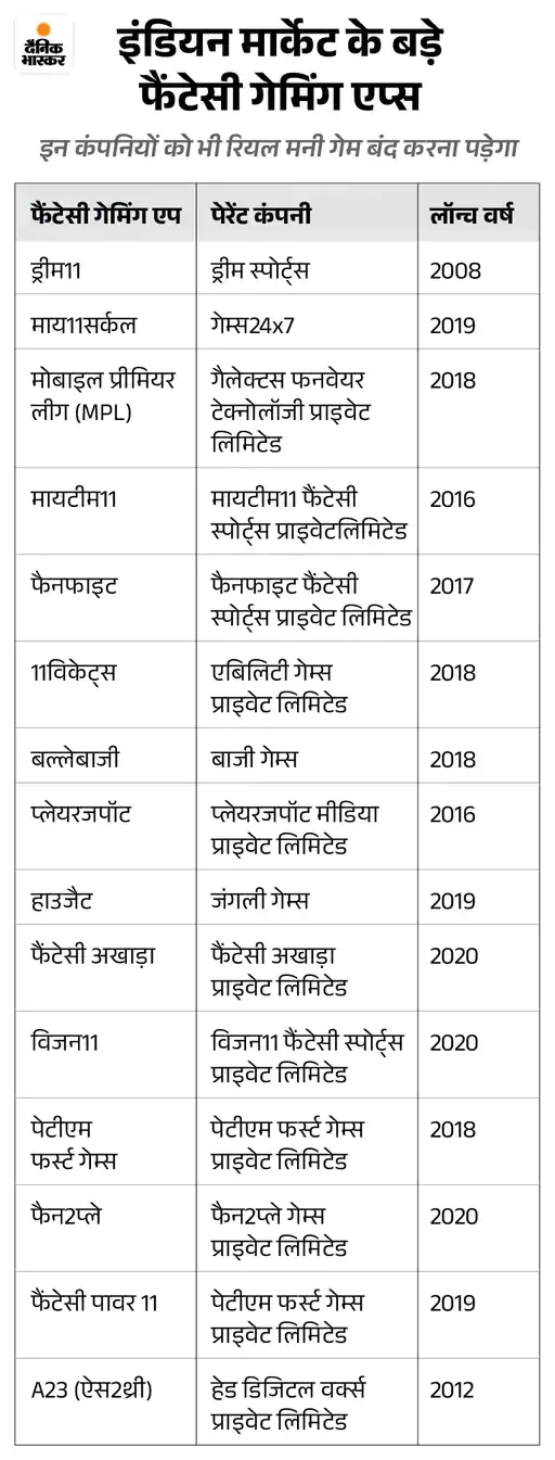 भारत में ऑनलाइन गेमिंग मार्केट अभी करीब 32,000 करोड़ रुपए का है। इसमें से 86% रेवेन्यू रियल मनी फॉर्मेट से आता था। 2029 तक इसके करीब 80 हजार करोड़ रुपए तक पहुंचने की उम्मीद थी। लेकिन अब इन्होंने रियल मनी गेम्स बंद कर दिए हैं।