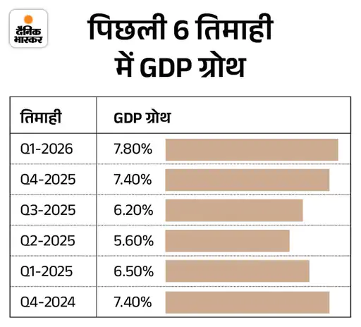 भारत सरकार और IMF के आंकड़ों में काफी अंतर है। भारत सरकार का अनुमान है कि वित्त वर्ष 2025-26 में इकोनॉमी 7.6% की रफ्तार से बढ़ेगी।