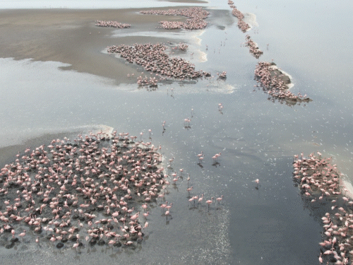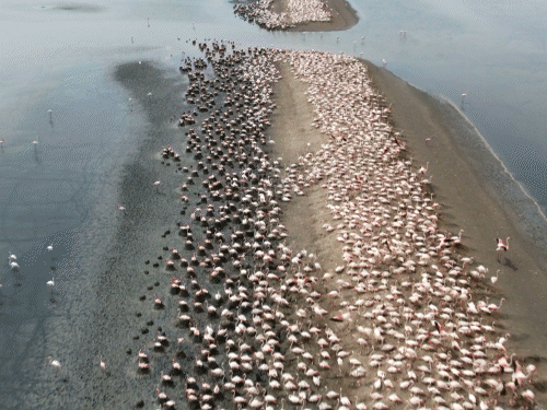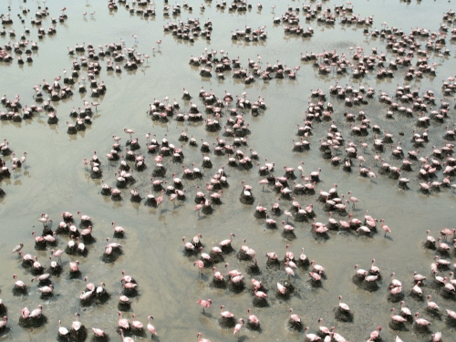 साइबेरिया, ईरान और यूरोप के ठंडे प्रदेशों से फ्लेमिंगो कच्छ के रण में हर साल सर्दियां बिताने आते हैं।
