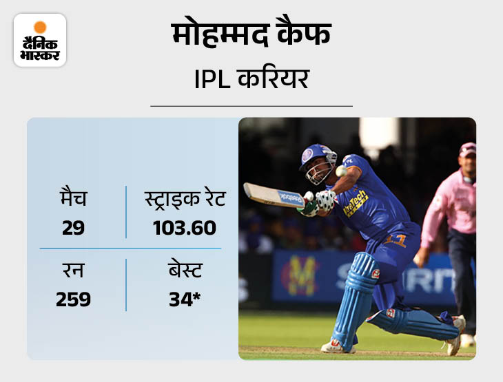 पहले सीजन के बाद राजस्थान ने कैफ को रिलीज कर दिया। फिर 2012 तक पंजाब किंग्स और रॉयल चैलेंजर्स बेंगलुरु के लिए 3 सीजन में वे 13 मैच ही खेल सके। जिनमें उन्होंने महज 83 रन बनाए। IPL करियर में उनके नाम एक भी फिफ्टी नहीं रही, 34 रन उनका बेस्ट स्कोर रहा। इसके बाद वे बतौर कोच टीमों का हिस्सा रहे।