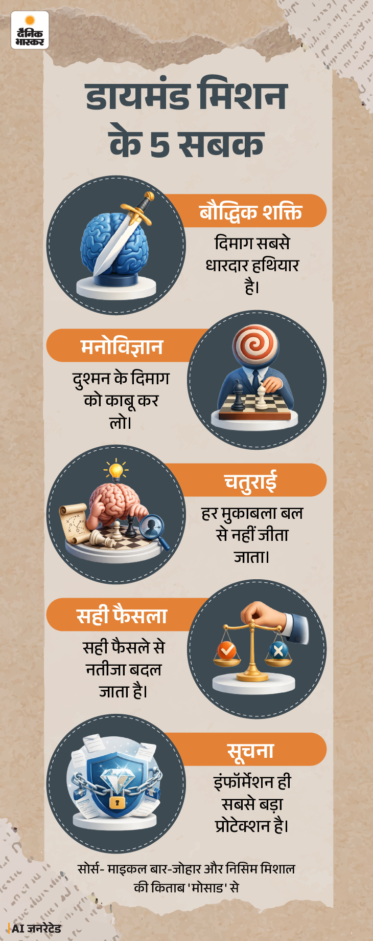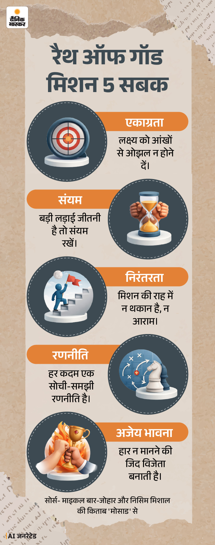 इजराइल के प्रसिद्ध लेखक माइकल बार-जोहार और निसिम मिशाल ने खुफिया एजेंसी ‘मोसाड’ के सीक्रेट मिशन्स की कहानियां लिखी हैं। यह सिर्फ जासूसी कहानियों का संग्रह नहीं है, बल्कि यह साहस, रणनीति और धैर्य का जीवंत दस्तावेज है। इसकी लेखन शैली इतनी प्रभावशाली है कि हर मिशन एक थ्रिलर फिल्म जैसा लगता है।