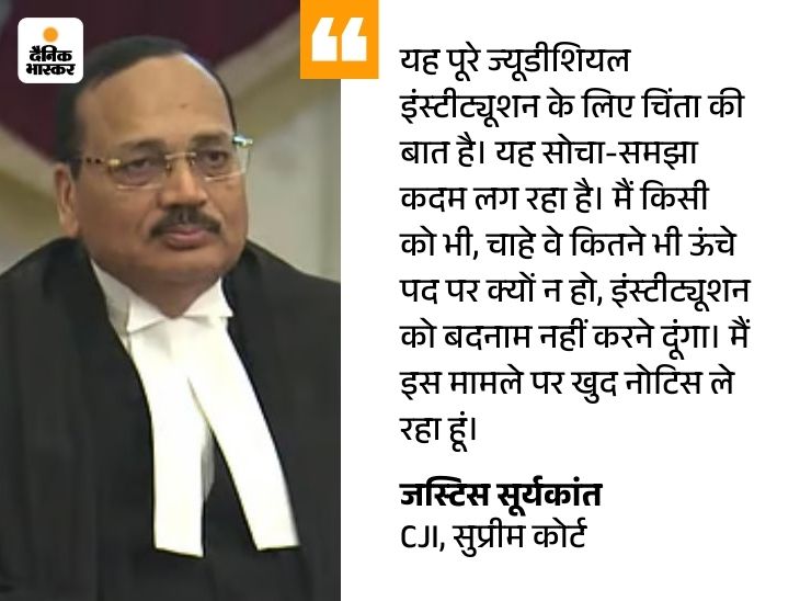 इसपर CJI सूर्यकांत ने कहा- दुनिया में किसी को भी न्यायपालिका को बदनाम करने की इजाजत नहीं दी जाएगी। यह एक सोची-समझी और गहरी साजिश लगती है। मुझे पता है इससे कैसे निपटना है।मैं यह केस खुद हैंडल करूंगा। हम इस बारे में और कुछ नहीं कहना चाहते।