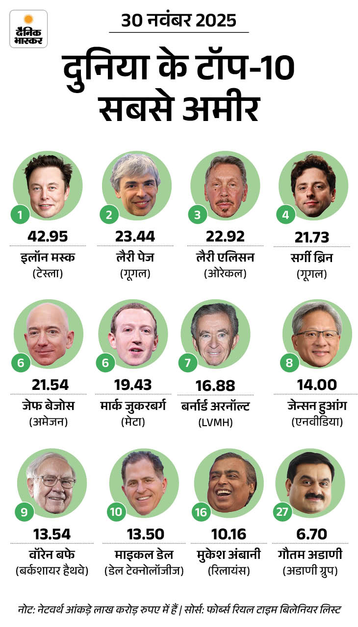कल दुनिया के टॉप-10 सबसे अमीर कौन रहे यह भी देख लीजिए…