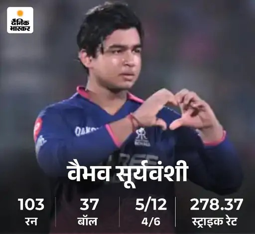 इसी के साथ वे आईपीएल के इतिहास में तीसरे सबसे तेज शतक लगाने वाले खिलाड़ी बन गए हैं। पहले नंबर पर क्रिस गेल हैं। गेल ने 2013 में पुणे वॉरियर्स इंडिया के खिलाफ 30 गेंद पर शतक लगाया था। इसके अलावा वैभव IPL में सबसे तेज शतक लगाने वाले भारतीय भी बन गए हैं।