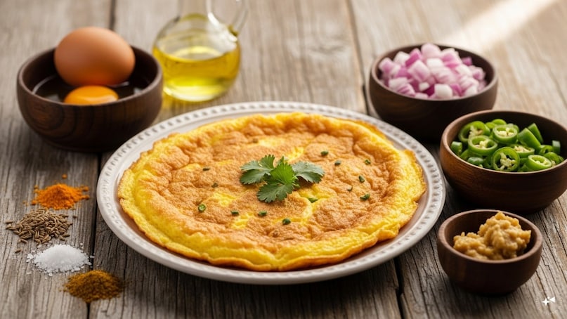 सही एग ऑमलेट के लिए ज्यादा चीजों की जरूरत नहीं है. 1 टेबल स्पून तेल, 1 अंडा, 1 छोटी प्याज, 2 हरी मिर्च, थोड़ा सा नमक, थोड़ा सा हल्दी, आधा टीस्पून जीरा, थोड़ा अदरक-लहसुन पेस्ट. थोड़ा गरम मसाला और थोड़ा हरा धनिया भी ले लो. अगर हरी मिर्च नहीं है तो उसकी जगह आधा टीस्पून लाल मिर्च पाउडर डाल सकते हो. ये सब जरूरी चीजें हैं. इनमें से कुछ भी मत छोड़ो. तभी ऑमलेट का स्वाद जबरदस्त आएगा.