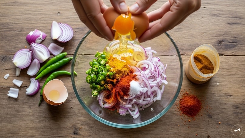अब प्याज को बहुत बारीक काटना है. साथ ही हरी मिर्च को भी बारीक काट लें. इन दोनों को बारीक काटना बहुत जरूरी है. इसमें कोई समझौता न करें. जबरदस्त ऑमलेट के लिए थोड़ा मेहनत करनी पड़ेगी. इसका रिजल्ट खाते वक्त पता चलेगा. ठीक है, ये दोनों काटने के बाद एक बाउल में डालें, उसमें अंडा तोड़कर डालें, बाकी सारी सामग्री भी उसमें डालकर अच्छे से मिला लें. तेल अभी न डालें, न ही मिलाएं.