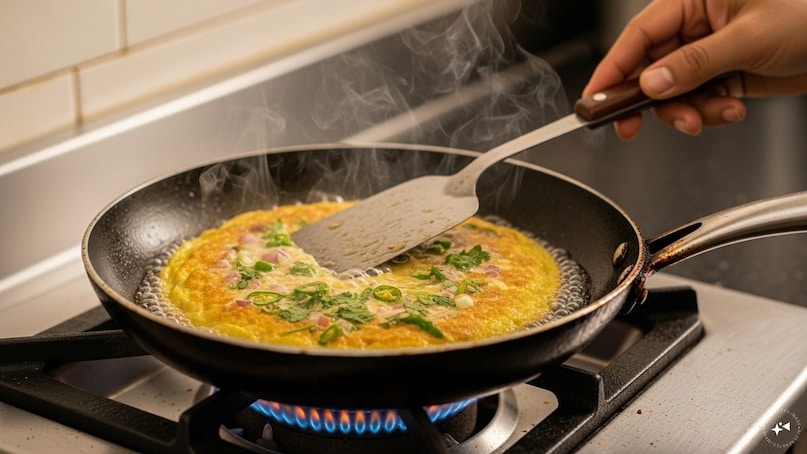 अब ऑमलेट को खाकर देखें, इसका स्वाद बहुत अच्छा लगेगा. हर बाइट में हल्का मीठा, थोड़ा तीखा, थोड़ा क्रंची और बहुत टेस्टी होता है. खास बात है इसमें सीक्रेट इंग्रीडिएंट धनिया पत्ता. बहुत लोग इसे नहीं डालते, लेकिन ये बहुत अच्छा स्वाद देता है. ऑमलेट नरम और स्मूद रहता है. अगर ये डालें तो क्रंची टेस्ट भी आता है. ज्यादा क्रंची चाहिए तो थोड़ा ज्यादा तेल डाल सकते हैं, लेकिन ज्यादा तेल हेल्दी नहीं है, इसलिए ध्यान रखें.