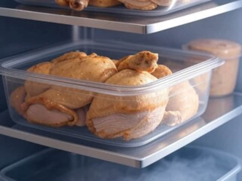 कैसे स्टोर करें? फूड सेफ्टी संस्थाएं कहती हैं कि फ्रिज में रखने का तरीका ही तय करता है कि चिकन कितने समय तक सुरक्षित रहेगा. इंटरनेशनल फूड सेफ्टी गाइडलाइंस के मुताबिक, पकाया हुआ खाना 2 घंटे के अंदर फ्रिज में रखना चाहिए. अगर आसपास का तापमान 32 डिग्री सेल्सियस से ज्यादा है तो 1 घंटे के अंदर फ्रिज में रखना जरूरी है. चिकन को एयरटाइट कंटेनर या अच्छी तरह से बंद पैकेजिंग में स्टोर करें. इससे नमी बनी रहती है और बैक्टीरिया की ग्रोथ कम होती है.
