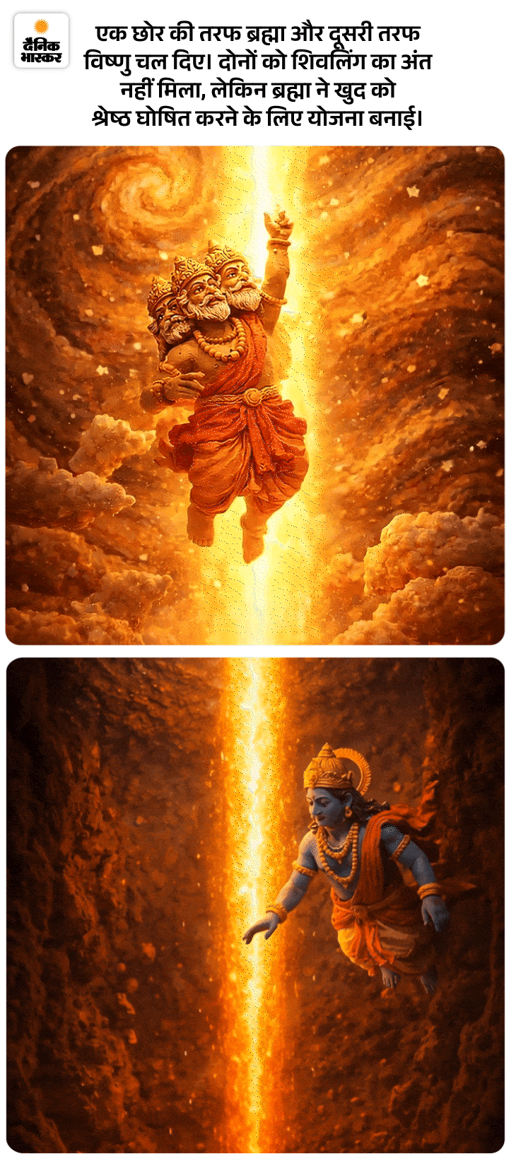 भगवान विष्णु और ब्रह्माजी के बीच विवाद हुआ। वजह थी, दोनों में श्रेष्ठ कौन ? तब शिवजी लिंग के रूप में प्रकट हुए। शिव ने कहा आप दोनों में से जो इस लिंग का छोर (अंत) खोज लेगा, वो श्रेष्ठ होगा। इस तरह पहली बार शिवलिंग प्रकट हुआ।