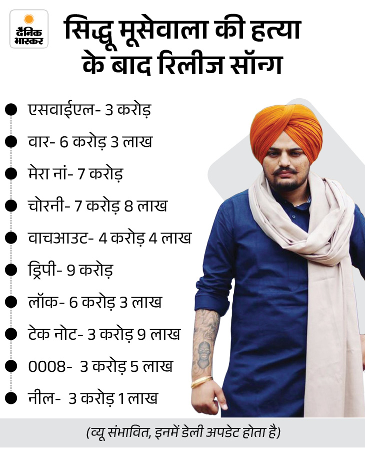 बता दें कि सिद्धू मूसेवाला की मानसा के गांव जवाहके में 29 मई 2022 को गोलियां मार कर हत्या कर दी गई थी। कत्ल की जिम्मेदारी गैंगस्टर लॉरेंस और गोल्डी बराड़ ने ली। मौत के बाद सिद्धू मूसेवाला के रिकॉर्डेड गीतों को उनके पिता बलकौर सिंह हर साल रिलीज करते हैं। 4 साल में सिद्धू के 9 गीत आ चुके हैं और उन्हें पहले से भी ज्यादा व्यू मिल रहे हैं।