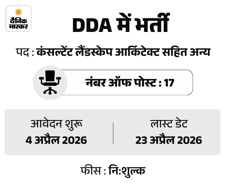 4. DDA में 17 पदों पर निकली भर्ती, लास्ट डेट 23 अप्रैल