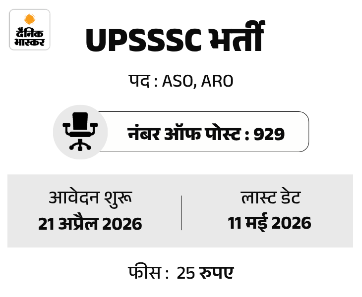 1. यूपी में ASO, ARO भर्ती के लिए आवेदन शुरू, फीस 25 रुपए