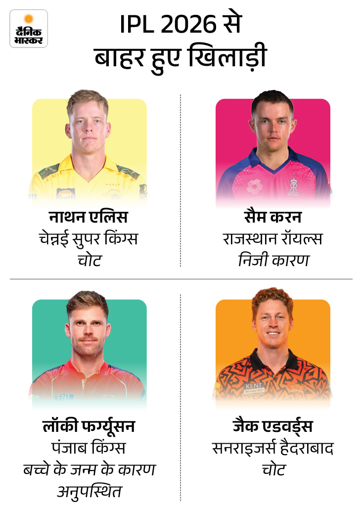 नाथन एलिस हैमस्ट्रिंग इंजरी के कारण IPL 2026 से बाहर:CSK ने रिप्लेसमेंट जारी नहीं किया, फ्रेंचाइजी ने 2 करोड़ रुपए में खरीदा था