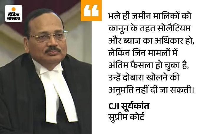 चीफ जस्टिश सूर्यकांत और जस्टिस उज्जल भुइयां की बेंच ने कहा कि जमीन अधिग्रहण के मामलों में सही मुआवजा मिलना संवैधानिक अधिकार है। इसे कमजोर नहीं किया जा सकता। इसे सरकार पर पड़ने वाले आर्थिक बोझ से नहीं जोड़ा जा सकता।