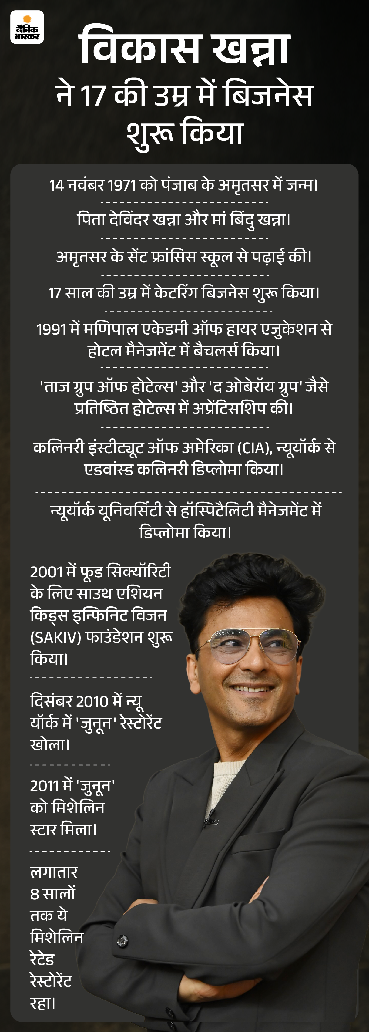 फेमस शेफ विकास खन्ना न सिर्फ शेफ हैं बल्कि लेखक, फिल्म प्रोड्यूसर और डायरेक्टर भी हैं। विकास इंडियन क्विजीन को अपने ऑथेंटिक रूप में इंटरनेशनल मंचों पर ले जाने के लिए जाने जाते हैं।