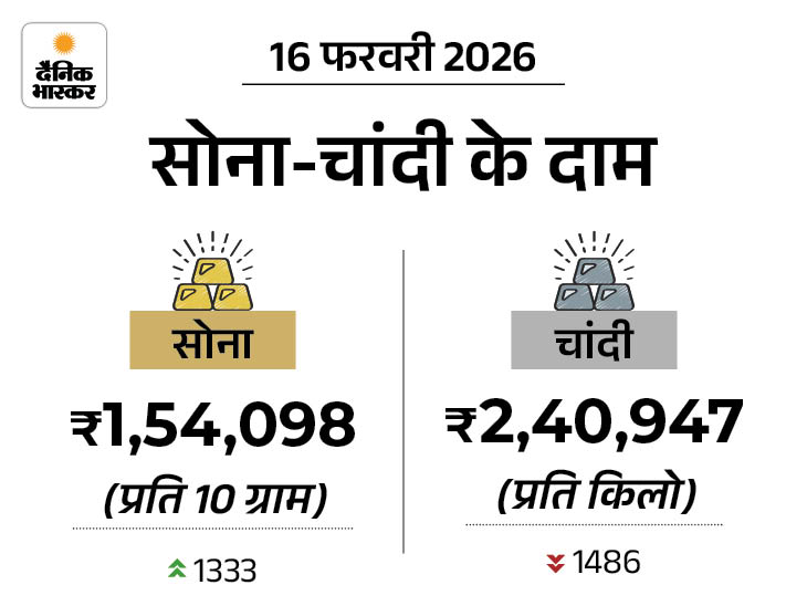 वहीं, आज 10 ग्राम 24 कैरेट सोने की कीमत 1,333 रुपए बढ़कर 1,54,098 रुपए पर पहुंच गई है। इससे पहले शुक्रवार को ये 1,52,765 रुपए प्रति 10 ग्राम थी। हालांकि, पिछले तीन कारोबारी दिनों में चांदी ₹25,502 और सोना 3,224 रुपए सस्ता हुआ है