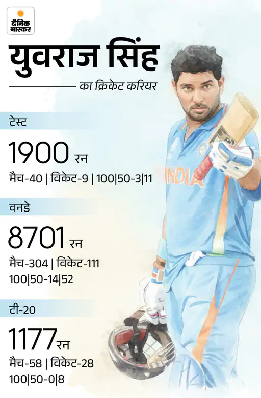 युवराज सिंह ने साल 2000 में अपने अंतरराष्ट्रीय करियर की शुरुआत की थी और जून 2019 में संन्यास लिया। उन्होंने भारत के लिए 304 वनडे, 58 टी-20 और 40 टेस्ट मैच खेले, जिनमें कुल 11,000 से ज्यादा रन बनाए। वे 2007 टी-20 वर्ल्ड कप और 2011 वनडे वर्ल्ड कप जीतने वाले टीम के सदस्य रहे।